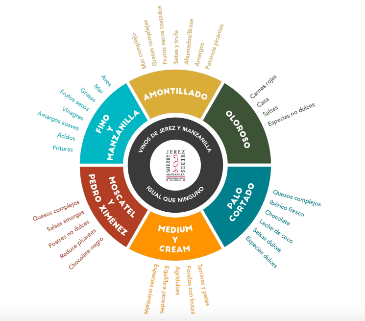 En el mundo del Sherry, tenemos 13 tipos de vinos, cada uno con una personalidad propia, 3 tipos de crianza (bajo velo de flor, crianza oxidativa, y combinación de ambas) ,vinos secos con menos de 4 gramos de azúcar por litro, hasta llegar a vinos dulces con más de 160 gramos por litro.