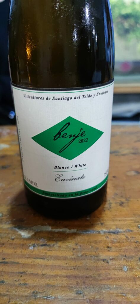 Benje Blanco es un vino blanco sobre lías elaborado con la variedad listán blanca en la D.O. Ycoden-Daute-Isora, en Santiago del Teide en una zona a 1.000 metros de altura en el noroeste de la isla, donde podemos encontrar una baja humedad y una alta insolación. Los viñedos utilizados para su elaboración tienen una edad entre 60 y 120 años, plantados en un suelo volcánico formado de tosca roja y basálticos. La crianza de este vino se realiza sobre sus lías durante 8 meses en depósitos de hormigón y barricas neutras de roble francés. Benje es como se llama al crater en guanche, idioma aborígen canario.